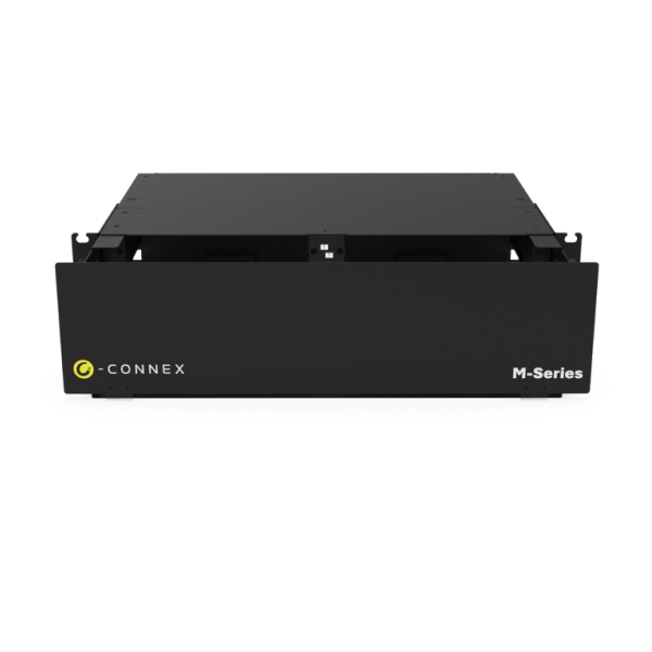 Each panel accommodates M Series cassettes or adapter plates supporting LC and SC fiber connectors, as well as RJ45 copper connectivity.